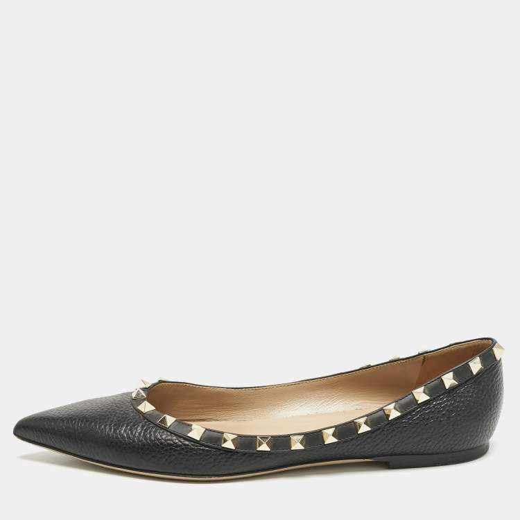 Pre Owned Valentino Black Leather Rockstud Ballet Flats Size 40