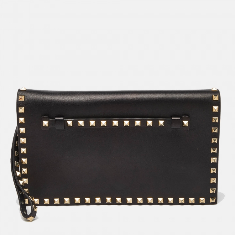 Pre Owned Valentino Black Leather Rockstud Wristlet Clutch