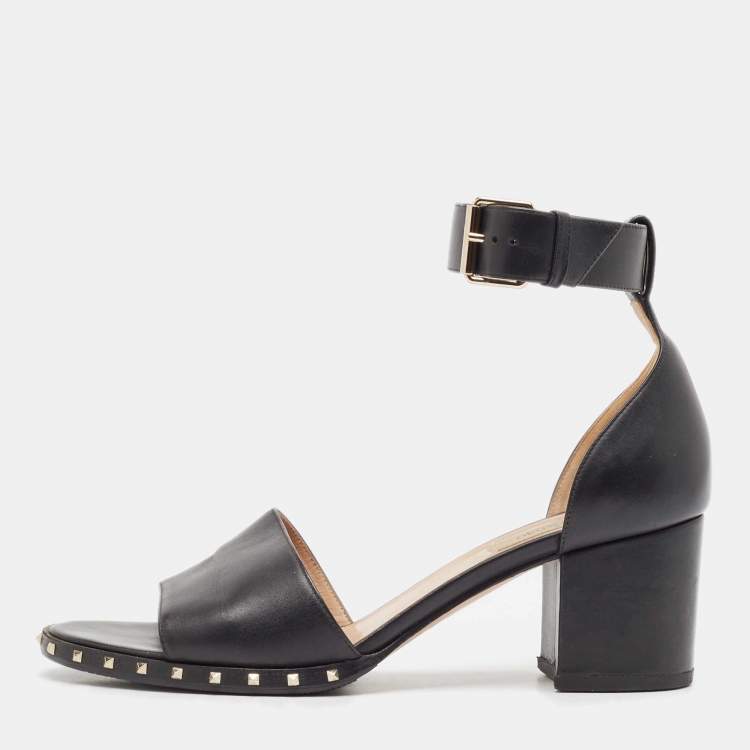 Pre Owned Valentino Black Leather Soul Rockstud Ankle Strap Sandals Size 39.5