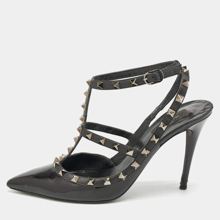 Pre Owned Valentino Black Patent and Leather Rockstud Caged Pumps Size 41