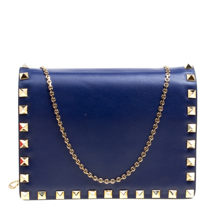 Valentino Blue Leather Rockstud Chain Shoulder Bag