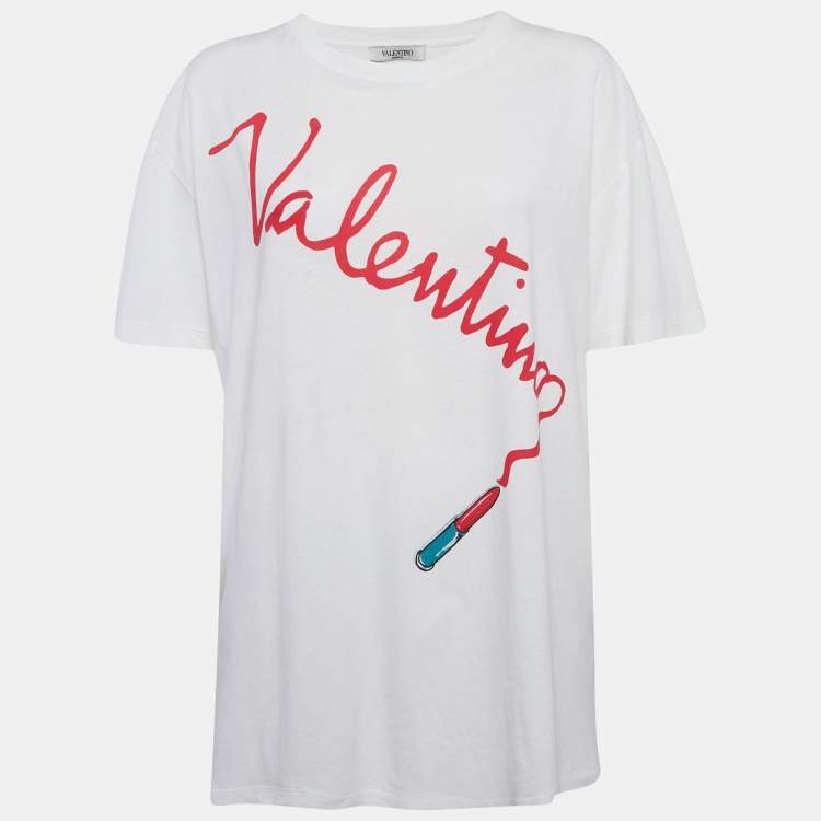 Pre Owned Valentino Garavani White Lipstick Print Cotton T-Shirt M