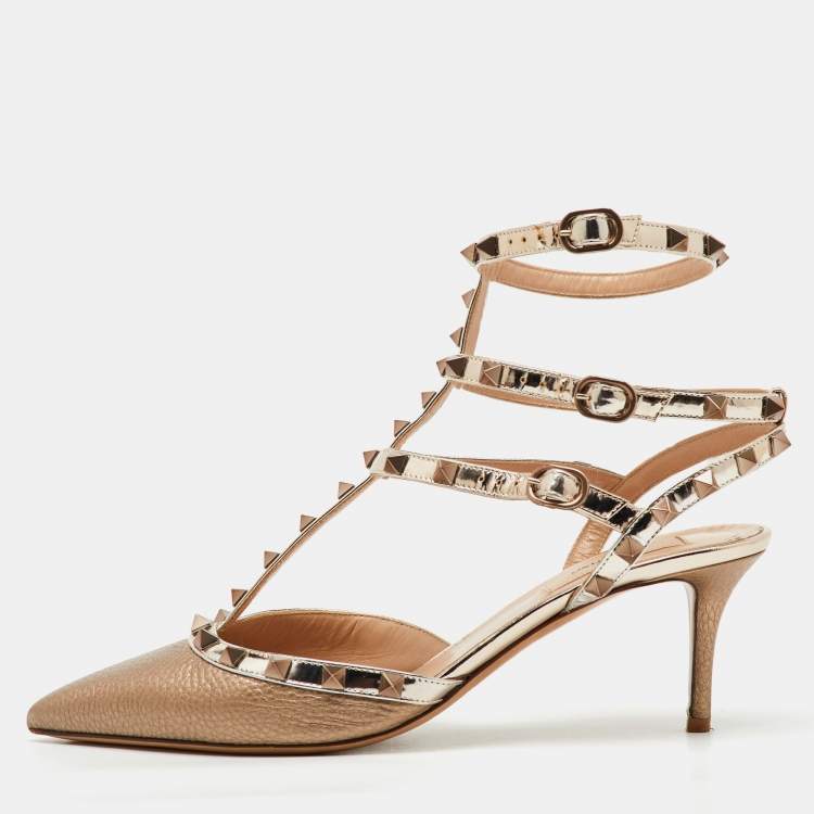 Valentino Metallic Leather Rockstud Caged Ankle Strap Pumps Size 40