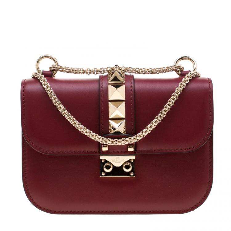 Valentino Rubino Leather Small Glam Lock Chain Shoulder Bag
