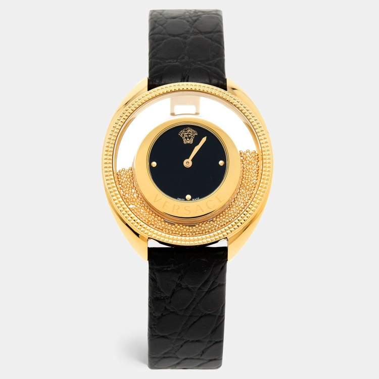 Embossed Leather, Gold Tone Stainless Steel