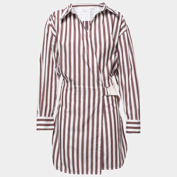 Victoria Beckham Brown Striped Cotton Wrap Shirt Dress S