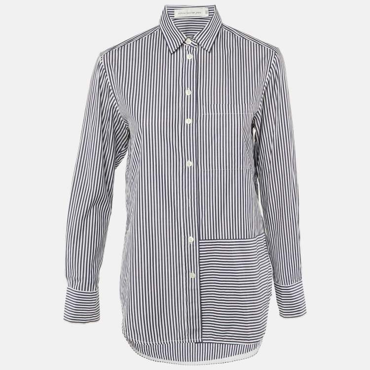 Victoria Beckham Jeans Navy Blue Striped Cotton Button Front Shirt S