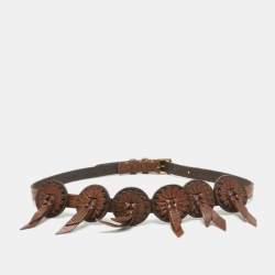 Ralph Lauren Dark Brown Leather Embossed Waist Buckle Belt M