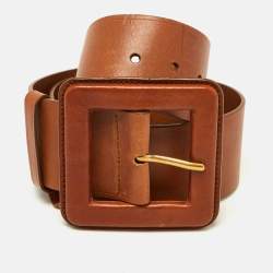 Yves Saint Laurent Brown Leather Strappy Wide Buckle Belt L