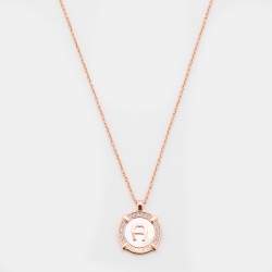 Aigner Mother of Pearl Crystal Logo Rose Gold Plated Pendant Necklace
