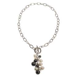 Aigner Crystal & Faux Pearl Silver Tone Necklace