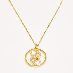 Aigner Double-A Logo Crystal Gold Tone Metal Circular Pendant Necklace
