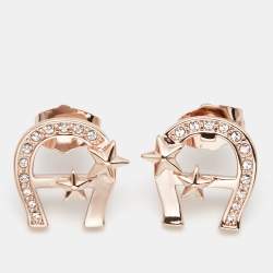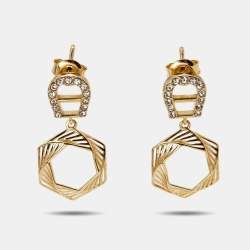 Aigner Gold Tone Crystal Embedded Logo Pendant Necklace & Earrings Set