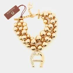 Aigner Gold Tone Logo Charm Chain Bracelet