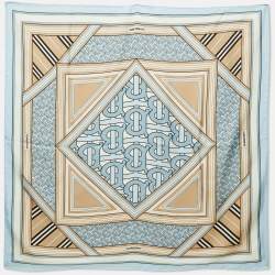 Burberry Beige/pink Silverware Print Silk Double Layered Scarf