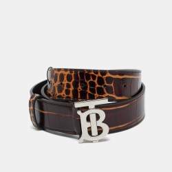 Burberry Brown Monogram Coated Canvas and Leather TB Buckle Belt S