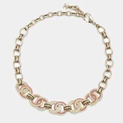 Chanel Logo Crystals Gold Tone Choker Necklace