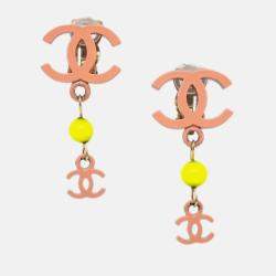 Chanel Clip-On Rhinestone Gold Button Earrings