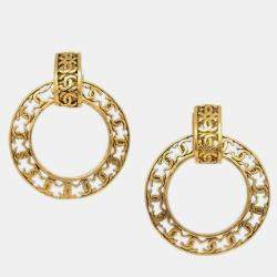 Chanel CC Vintage Gold Tone Round Clip Earrings