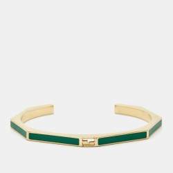 Fendi Fendista Crystal Studded Gold Tone Bracelet S