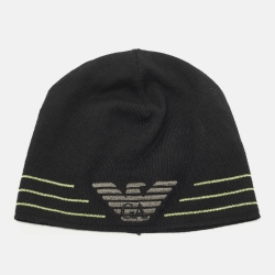 Giorgio Armani Black Logo Embroidered Wool Beanie S