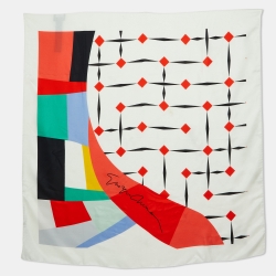 Giorgio Armani Blue Monogram Silk and Cotton Scarf