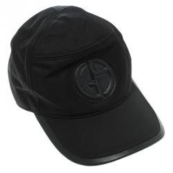 Giorgio Armani Black Embossed Logo Detail Leather Trim Baseball Cap M ( Size 57 )