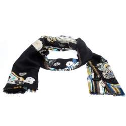 Kenzo Black Floral Jacquard and Printed Silk & Wool Scarf