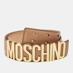 Moschino Brown Leather Classic Logo Waist Buckle Belt