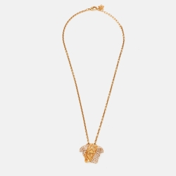 Versace La Medusa Greca Crystal Gold Tone Chain Necklace