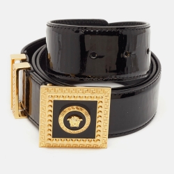 Versace Black Patent Leather Medusa Square Buckle Belt 85 CM
