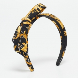Versace Black/Yellow Barocco Silk Bow Headband One Size