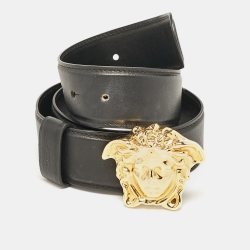 Versace Black Leather Medusa Head Buckle Belt 75 CM