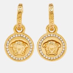 Versace Gold Tone Crystal Star & Medusa Drop Earrings