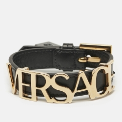 Versace Logo Leather Gold Tone Bracelet