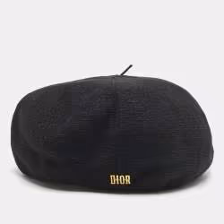 Christian Dior Black Logo Detail Linen Beret Cap One Size