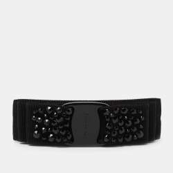 Salvatore Ferragamo Black Vara Bow Crystal Hair Clip