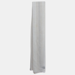 Coach White Striped Cotton Blend Scarf