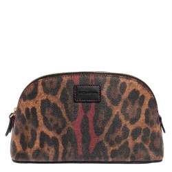 Dolce & Gabbana Brown Leopard Coated Canvas Cosmetic Case