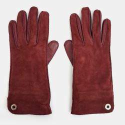Loro Piana Brown Suede and Leather Fur Trim Gloves M