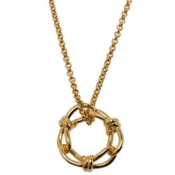 Balenciaga Continuity Bow Round Pendant Gold Tone Necklace
