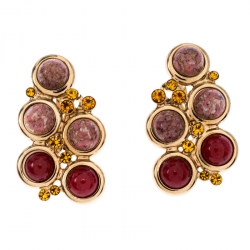 Etro Crystal Cabochon Gold Tone Clip-on Stud Earrings