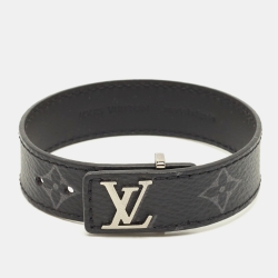Louis Vuitton LV Slim Black Monogram Canvas Silver Tone Bracelet