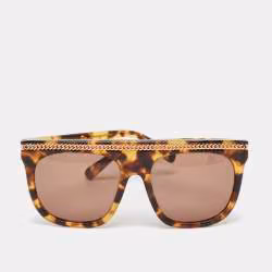 Stella McCartney Tortoise Brown Falabella Chain Square Sunglasses