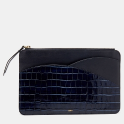 Chloe Navy Blue Croc Embossed Leather iPad Pouch