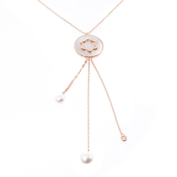 Montblanc Signet Mother of Pearl Diamond Cultured Pearl 18k Rose Gold Tassel Pendant Necklace