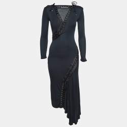 Alexander McQueen Black Crepe Satin Long Leaf Draped Dress XS