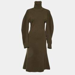 Balenciaga Green Dotted Silk Jacquard Midi Dress M