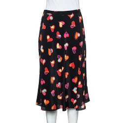 Boutique Moschino Black Heart Print Silk Skirt S