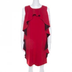 Boutique Moschino Red Crepe Knit Ruffle Front Sleeveless Shift Dress M